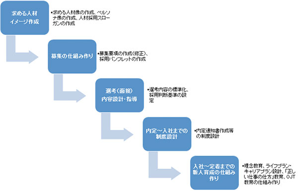 選考、内定(採用)、定着までの仕組み作りをご支援します。